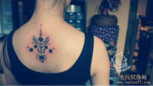 女生后背唯美清晰的小图腾纹身图案