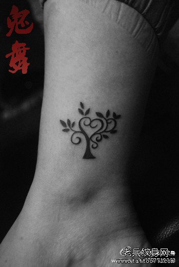 女生小腿小巧的小树纹身图案
