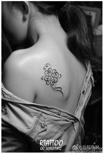 女生肩背唯美时尚的图腾四叶草纹身图案