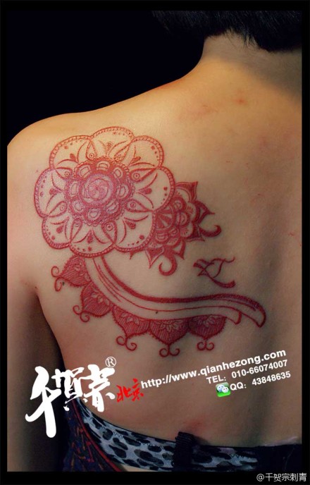 男生后背唯美时尚的图腾蕾丝纹身图案