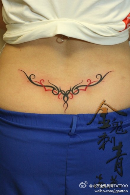 美女腰部潮流精美的图腾藤蔓纹身图案