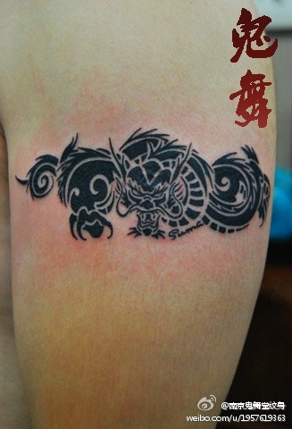 男生手臂潮流经典的一款图腾龙纹身图案
