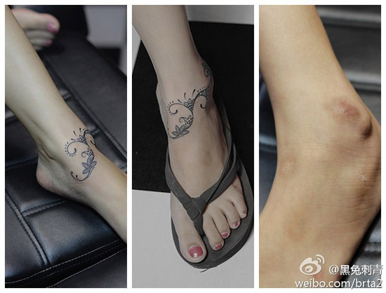 女生脚踝处时尚唯美的图腾藤蔓纹身图案