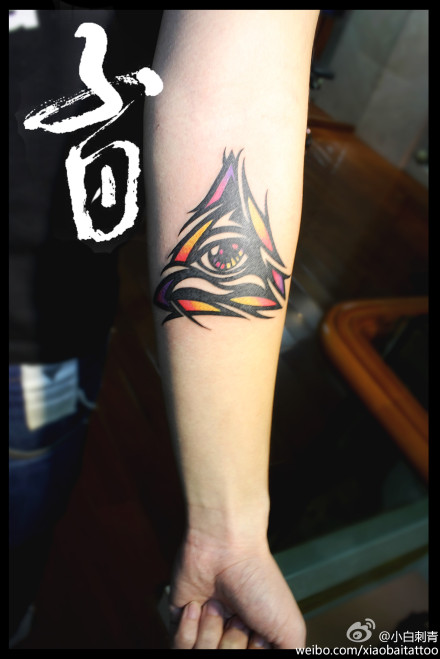 手臂潮流时尚的图腾三角眼睛纹身图案