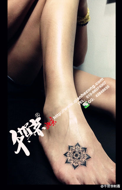 女生脚背潮流时尚的图腾花卉纹身图案