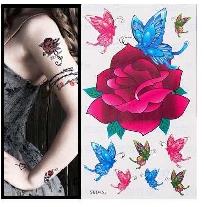 一款玫瑰花蝴蝶纹身手稿