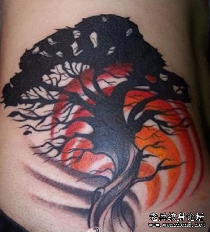 一款腰部图腾树纹身图案纹身图片