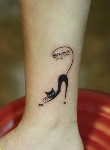 脚踝文身图案大全:脚踝图腾猫咪文身图案图片