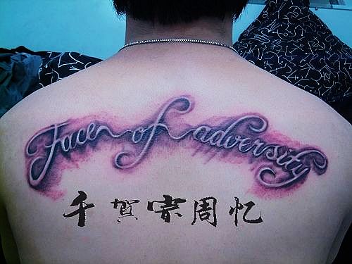背部纹身图案大全:后背地裂文字纹身图案图片大全