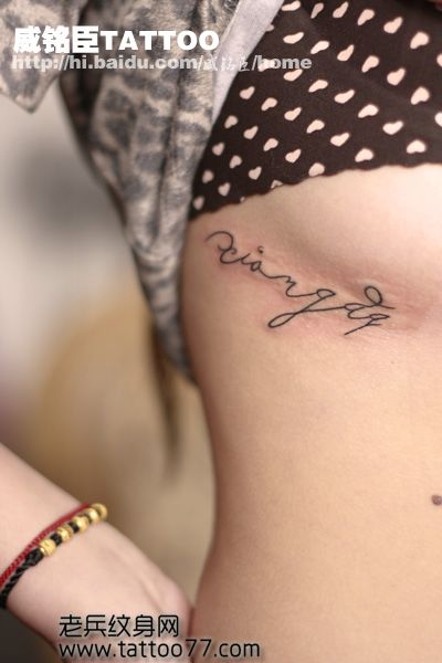 美女腹部到腰部潮流时尚的哥特字母纹身图案