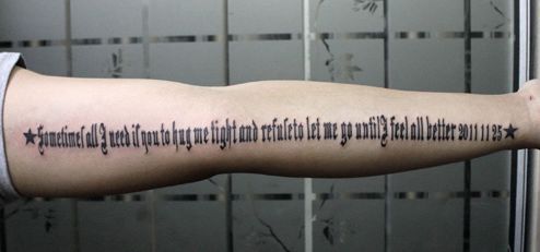 美女腹部到腰部潮流时尚的哥特字母纹身图案