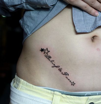 女孩子腹部时尚的英文字母纹身图案