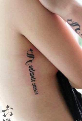 女孩子胸部哥特字体字母纹身图案