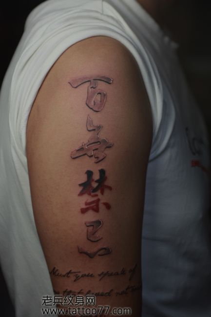 手臂一款浮雕文字纹身图案