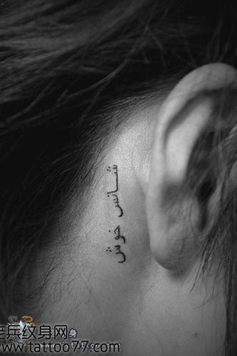 女生耳部精美的阿拉伯文字纹身图案