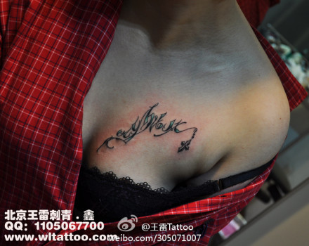 女生胸部时尚唯美的字母纹身图案