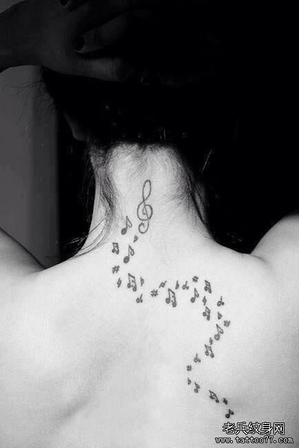 一款个性的后背音符纹身图案