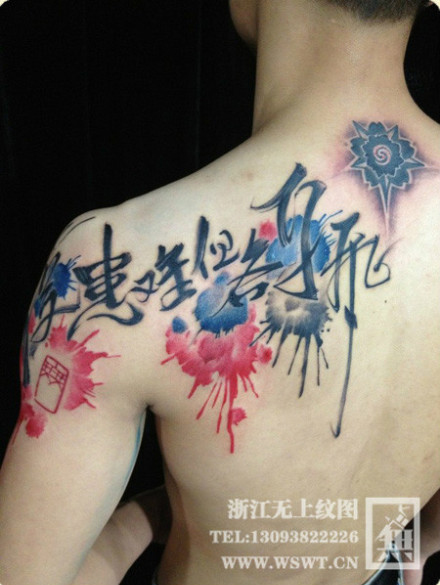男人肩背很帅经典的书法汉字纹身图案