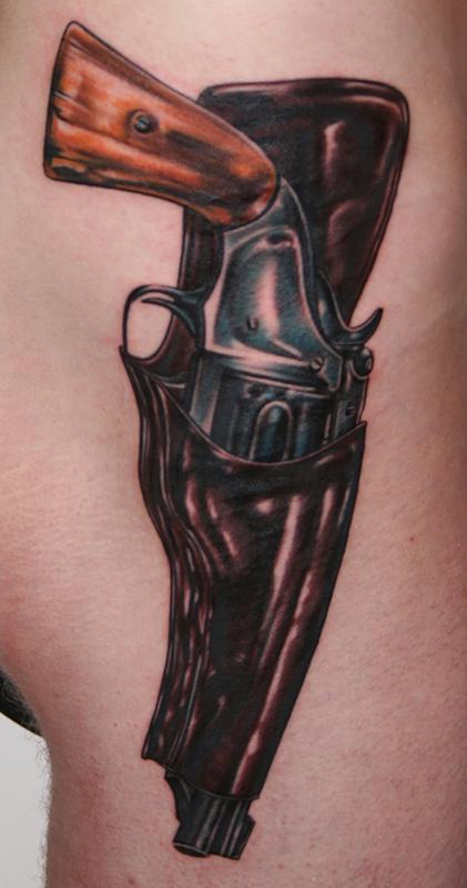 武汉宜昌文身店:腿部手枪纹身图案图片