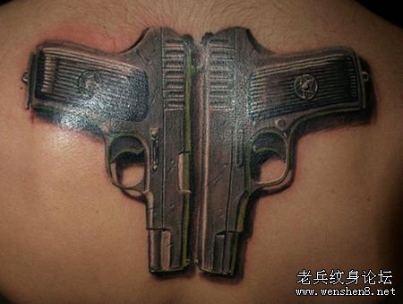 背部手枪纹身图案大全