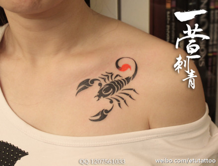 女生胸前潮流时尚的图腾蝎子纹身图案