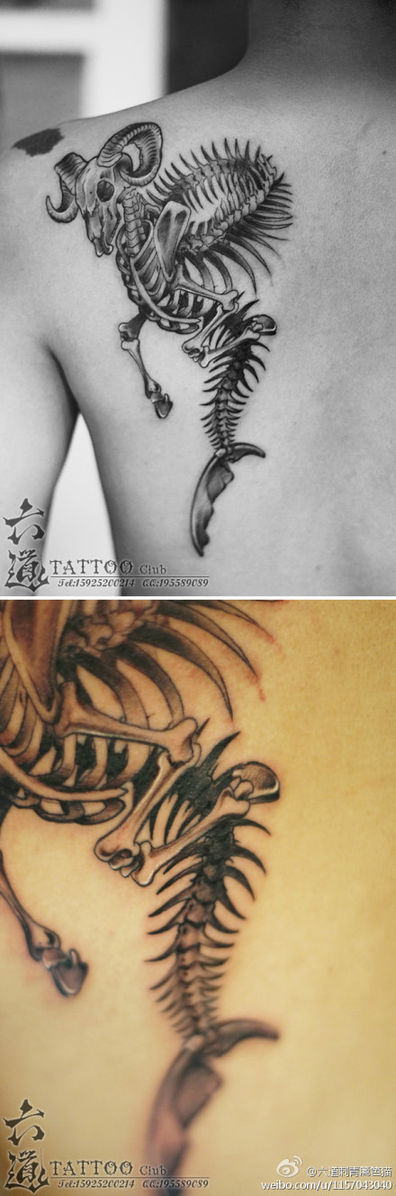 后背超酷一款摩羯座纹身图案