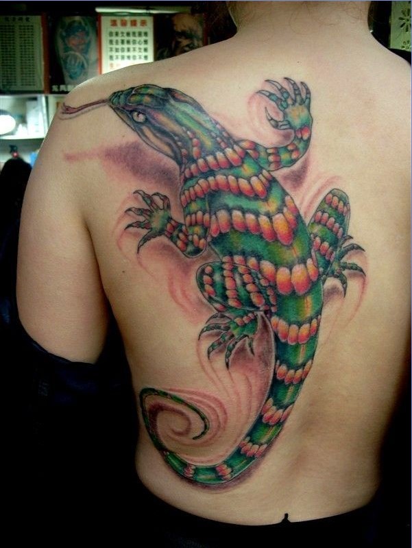 武汉最好的纹身店:半背彩色蜥蜴文身图案图片大全