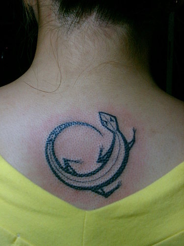 武汉最好的刺青店:颈部图腾蜥蜴文身图案大全