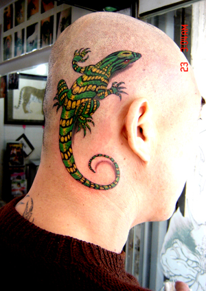 头部纹身图案大全:超酷的一款头部蜥蜴纹身图案图片