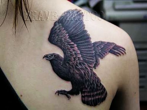 湖北武汉纹身店:肩背老鹰纹身图案图片大全