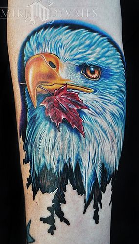 湖北荆州文身店:手部彩色老鹰头纹身图案图片大全