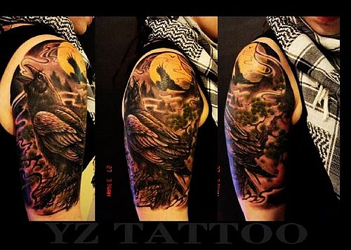 最好的纹身店:男人手臂老鹰纹身图案图片大全