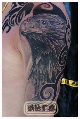 专业纹身店:大臂图腾老鹰纹身图案图片大全