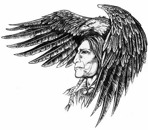 武汉纹身店:印第安人老鹰纹身图案图片