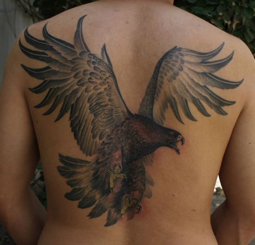 霸气超酷的一款背部老鹰纹身图案