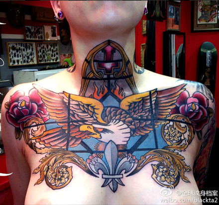 女生胸前很酷时尚的老鹰纹身图案