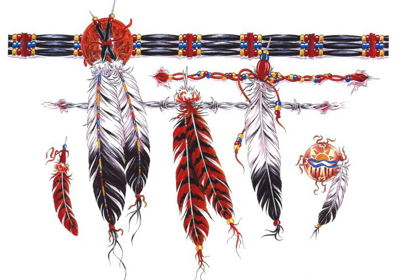 后背文身图案大全:后背羽毛纹身图案图片大全