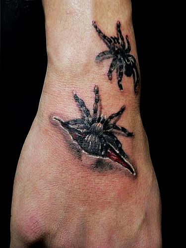 湖北随州纹身店:手部撕皮蜘蛛文身图案图片大全