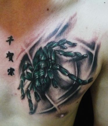 胸部帅气超酷的的蜘蛛纹身图案