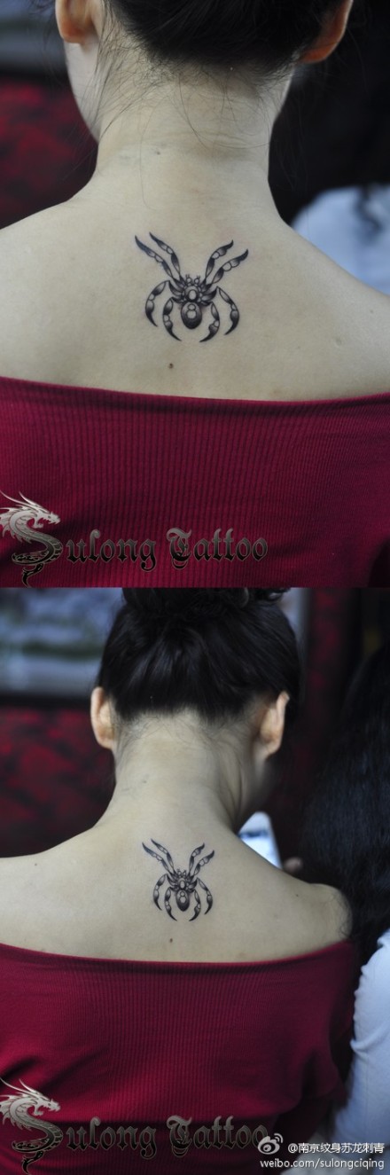 女生后背简单时尚的蜘蛛纹身图案