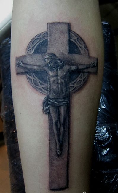 手臂一款宗教十字架耶稣纹身图案