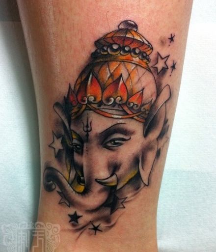 腿部一款宗教象神纹身图案