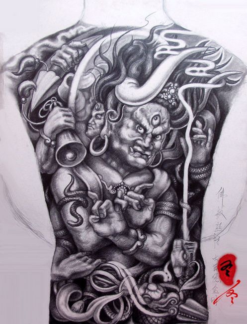 霸气的一款满背金刚菩萨纹身图案