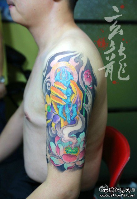 男生手臂经典潮流的佛手金刚杵纹身图案