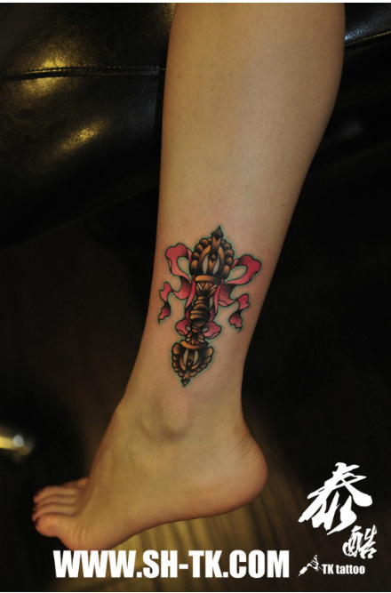 女生腿部经典潮流的金刚杵纹身图案