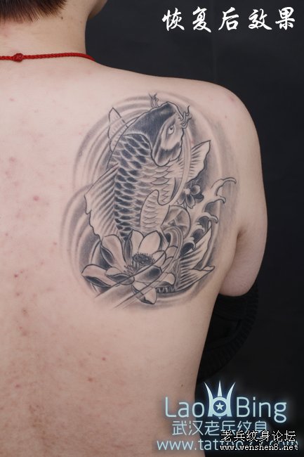 武汉老兵纹身店介绍一款鲤鱼莲花完美结合的纹身图案