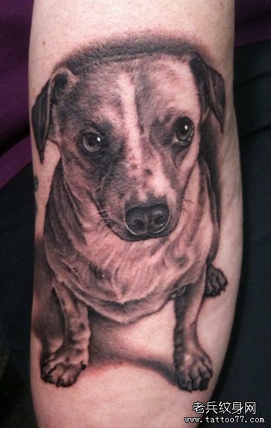 宠物 纹身 ,被很多纹身爱好者钟爱。除了对纹身的爱好之外,更多的是对自己宠物的一种感情流露。图片中的小狗纹身,整体最大的亮点是在对这只宠物神态的刻画,把主人对宠物的情感,和宠物对主人的情结都刻画的十分生动。这款宠物纹身的整体效果很有层次,像