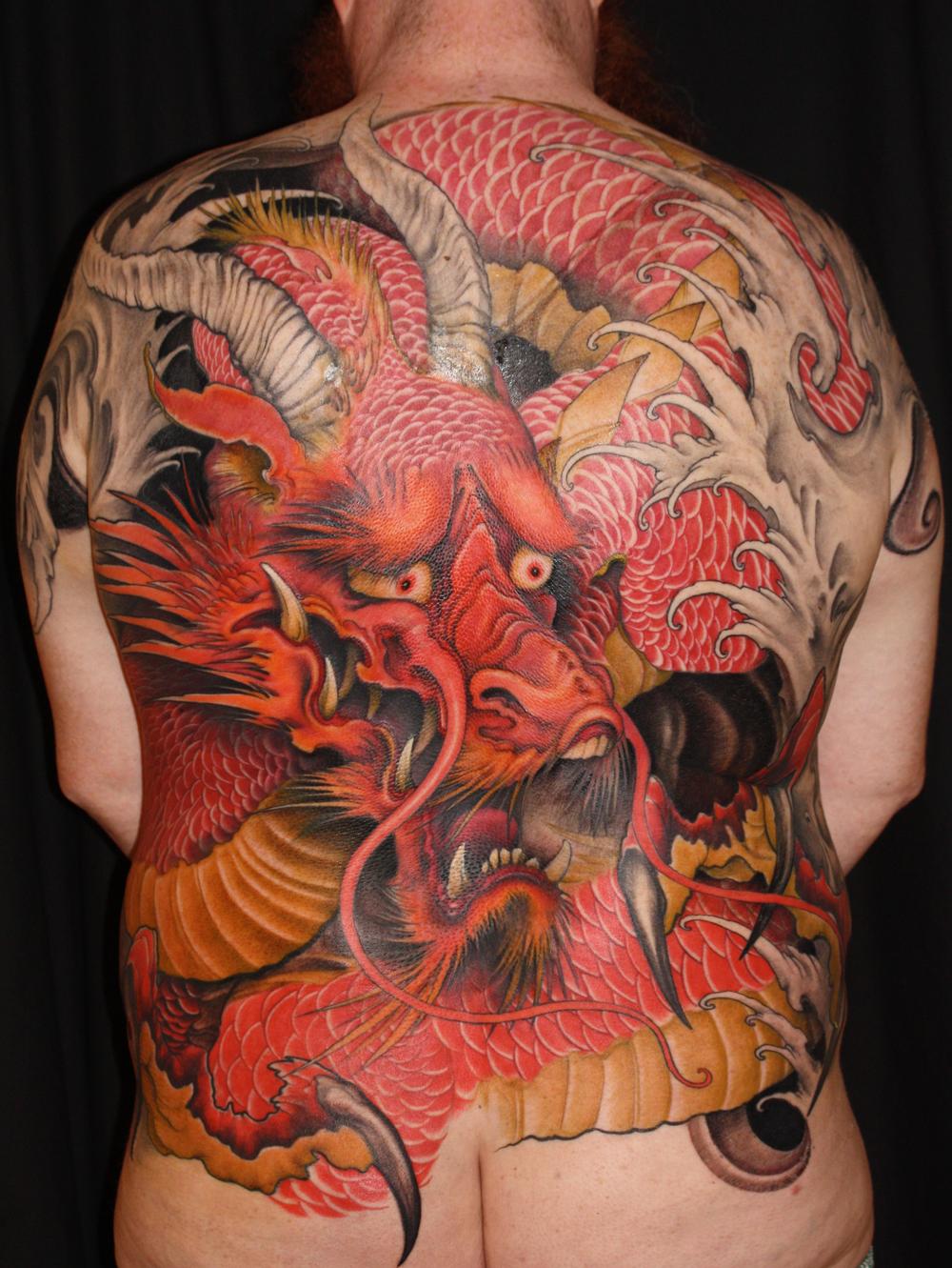 一款霸气的满背龙纹身图案图片