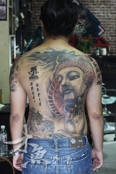 时尚超酷的满背佛头纹身图案