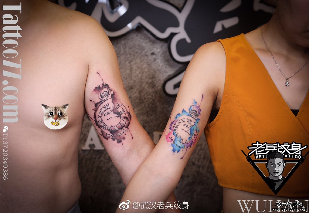 色彩泼墨怀表纹身作品
